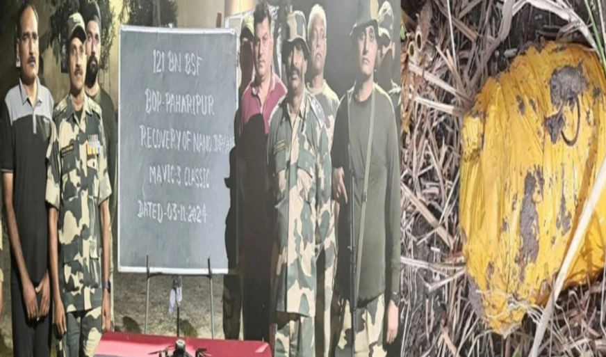 ਸੀਮਾ ਸੁਰੱਖਿਆ ਬਲ ਦੇ ਜਵਾਨਾਂ ਨੇ ਤਸਕਰੀ ਦੀਆਂ ਦੋ ਵੱਖ-ਵੱਖ ਕੋਸ਼ਿਸ਼ਾਂ ਨੂੰ ਨਾਕਾਮ ਕਰ ਦਿੱਤਾ। ਬੀਐਸਐਫ ਨੇ ਚੀਨ ਦਾ ਬਣਿਆ ਡੀਜੇਆਈ ਮਾਵਿਕ 3 ਕਲਾਸਿਕ ਡਰੋਨ ਅਤੇ ਹੈਰੋਇਨ ਦਾ ਇੱਕ ਪੈਕੇਟ ਬਰਾਮਦ ਕੀਤਾ ਹੈ। ਹੈਰੋਇਨ ਦੇ ਪੈਕੇਟ ਦਾ ਵਜ਼ਨ ਲਗਭਗ 426 ਗ੍ਰਾਮ ਸੀ, ਜਿਸ ਨੂੰ ਪੀਲੀ ਟੇਪ ਵਿੱਚ ਲਪੇਟਿਆ ਗਿਆ ਸੀ ਅਤੇ ਲੂਪ ਰਾਹੀਂ ਤਾਂਬੇ ਦੀ ਤਾਰ ਨਾਲ ਫਿੱਟ ਕੀਤਾ ਗਿਆ ਸੀ।