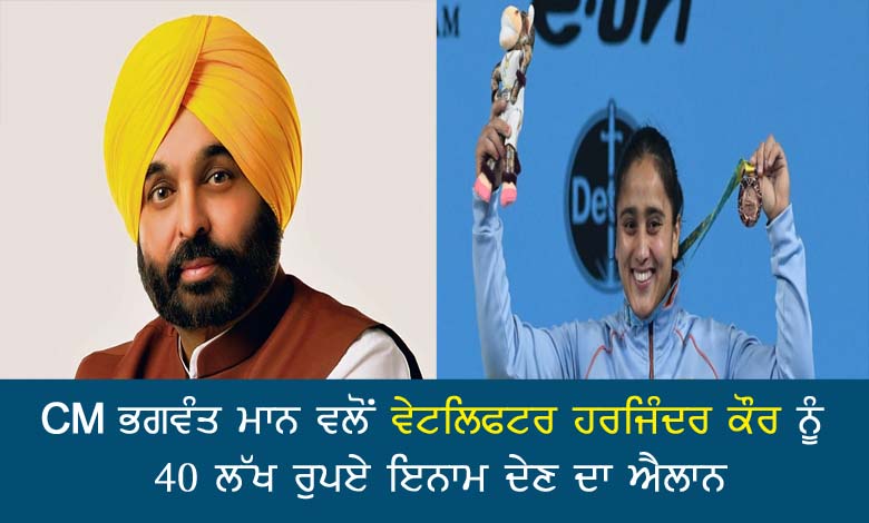 CM ਭਗਵੰਤ ਮਾਨ ਵਲੋਂ ਵੇਟਲਿਫਟਰ ਹਰਜਿੰਦਰ ਕੌਰ ਨੂੰ 40 ਲੱਖ ਰੁਪਏ ਇਨਾਮ ਦੇਣ ਦਾ ਐਲਾਨ