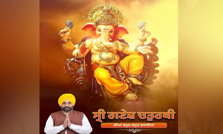 ਪੰਜਾਬ ਦੇ ਮੁੱਖ ਮੰਤਰੀ ਭਗਵੰਤ ਮਾਨ ਨੇ ਗਣੇਸ਼ ਚਤੁਰਥੀ ਦੀ ਦੇਸ਼ ਵਾਸੀਆਂ ਨੂੰ ਵਧਾਈ ਦਿੱਤੀ ਹੈ। ਉਨ੍ਹਾਂ ਨੇ ਟਵੀਟ ਕਰਦਿਆਂ ਲਿਖਿਆ ਹੈ ਕਿ ਸ੍ਰੀ ਗਣੇਸ਼ ਚਤੁਰਥੀ ਦੇ ਸ਼ੁੱਭ ਅਵਸਰ ਮੌਕੇ ਸਮੂਹ ਦੇਸ਼ ਵਾਸੀਆਂ ਨੂੰ ਬਹੁਤ-ਬਹੁਤ ਵਧਾਈਆਂ… ਭਗਵਾਨ ਸ੍ਰੀ ਗਣੇਸ਼ ਜੀ ਸਾਰਿਆਂ ‘ਤੇ ਮਿਹਰ ਕਰਨ…ਸਭਨਾਂ ਦੇ ਘਰ ਖੁਸ਼ੀਆਂ-ਖੇੜੇ ਅਤੇ ਤੰਦਰੁਸਤੀ ਬਣੇ ਰਹਿਣ…