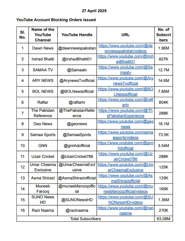ਕਿਹੜੇ ਕਿਹੜੇ ਯੂ-ਟਿਊਬ ਚੈਨਲਾਂ ਖਿਲਾਫ ਕੀਤੀ ਗਈ ਕਾਰਵਾਈ ? ਦੇਖੋ ਸੂਚੀ