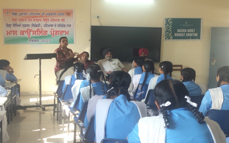 ਪਟਿਆਲਾ, 7 ਨਵੰਬਰ 2025 : ਪਟਿਆਲਾ ਦੇ ਡਿਪਟੀ ਕਮਿਸ਼ਨਰ ਡਾ. ਪ੍ਰੀਤੀ ਯਾਦਵ (Dr. Preeti Yadav) ਦੇ ਦਿਸ਼ਾ-ਨਿਰਦੇਸ਼ ਹੇਠ ਜ਼ਿਲ੍ਹਾ ਰੋਜ਼ਗਾਰ ਤੇ ਕਾਰੋਬਾਰ ਬਿਊਰੋ, ਪਟਿਆਲਾ ਵੱਲੋਂ ਉਲੀਕੇ ਮਾਸ ਕਾਂਊਸਲਿੰਗ ਪ੍ਰੋਗਰਾਮ ਤਹਿਤ ਅੱਜ ਪਟਿਆਲਾ ਜ਼ਿਲ੍ਹੇ ਦੇ 2 ਸਕੂਲਾਂ ਸਰਕਾਰੀ ਸੀਨੀਅਰ ਸਕੈਡੰਰੀ ਸਕੂਲ, ਸਿੱਧੂਵਾਲ ਅਤੇ ਸਰਕਾਰੀ ਸੀਨੀਅਰ ਸਕੈਡੰਰੀ ਸਕੂਲ, ਕਪੂਰੀ ਵਿੱਚ ਮਾਸ ਕਾਂਊਸਲਿੰਗ ਪ੍ਰੋਗਰਾਮ (Mass Counseling Program) ਕੀਤਾ ਗਿਆ ।