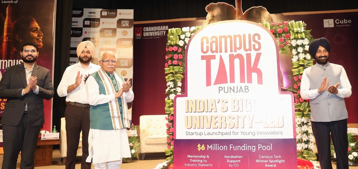 ਕੈਂਪਸ ਟੈਂਕ ਪੰਜਾਬ ਦੇ ਲਾਂਚ ਸਮਾਰੋਹ ਵਿੱਚ ਕੇਂਦਰੀ ਬਿਜਲੀ, ਹਾਊਸਿੰਗ ਅਤੇ ਸ਼ਹਿਰੀ ਮਾਮਲਿਆਂ ਦੇ ਮੰਤਰੀ ਮਨੋਹਰ ਲਾਲ ਖੱਟਰ ਮੁੱਖ ਮਹਿਮਾਨ ਵਜੋਂ ਸ਼ਾਮਲ ਹੋਏ, ਉਨ੍ਹਾਂ ਦੇ ਨਾਲ ਸੰਸਦ ਮੈਂਬਰ (ਰਾਜ ਸਭਾ) ਅਤੇ ਚੰਡੀਗੜ੍ਹ ਯੂਨੀਵਰਸਿਟੀ ਦੇ ਚਾਂਸਲਰ ਸਤਨਾਮ ਸਿੰਘ ਸੰਧੂ, ਚੰਡੀਗੜ੍ਹ ਯੂਨੀਵਰਸਿਟੀ ਦੇ ਸੀਨੀਅਰ ਮੈਨੇਜਿੰਗ ਡਾਇਰੈਕਟਰ ਦੀਪਿੰਦਰ ਸਿੰਘ ਸੰਧੂ, ਅਪਨਾ ਦੇ ਉਪ-ਪ੍ਰਧਾਨ ਡਾ. ਪ੍ਰੀਤ ਦੀਪ ਸਿੰਘ, ਵੈਂਚਰ ਕੈਟਾਲਿਸਟਸ ਦੇ ਮੁੱਖ ਨਿਵੇਸ਼ ਅਧਿਕਾਰੀ ਵੰਸ਼ ਓਬਰਾਏ, ਅਤੇ ਪੰਜਾਬ ਦੇ ਸਟਾਰਟਅੱਪ ਸੈੱਲ ਦੇ ਸੰਯੁਕਤ ਨਿਰਦੇਸ਼ਕ (ਜੁਆਇੰਟ ਡਾਇਰੈਕਟਰ) ਦੀਪਇੰਦਰ ਸਿੰਘ ਸ਼ਾਮਲ ਸਨ ।