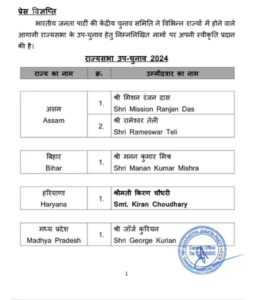 ਜਦਕਿ ਰਾਜਸਥਾਨ ਤੋਂ ਭਾਜਪਾ ਦੇ ਸਾਬਕਾ ਪ੍ਰਧਾਨ ਸਤੀਸ਼ ਪੂਨੀਆ ਅਤੇ ਅਰੁਣ ਚਤੁਰਵੇਦੀ, ਸਾਬਕਾ ਵਿਰੋਧੀ ਧਿਰ ਦੇ ਨੇਤਾ ਰਾਜੇਂਦਰ ਰਾਠੌਰ, ਭਾਜਪਾ ਦੀ ਰਾਸ਼ਟਰੀ ਜਨਰਲ ਸਕੱਤਰ ਅਲਕਾ ਗੁਰਜਰ ਅਤੇ ਸਾਬਕਾ ਸੰਸਦ ਮੈਂਬਰ ਸੀਆਰ ਚੌਧਰੀ ਦੇ ਨਾਂ ਵੀ ਸ਼ਾਮਲ ਹਨ।